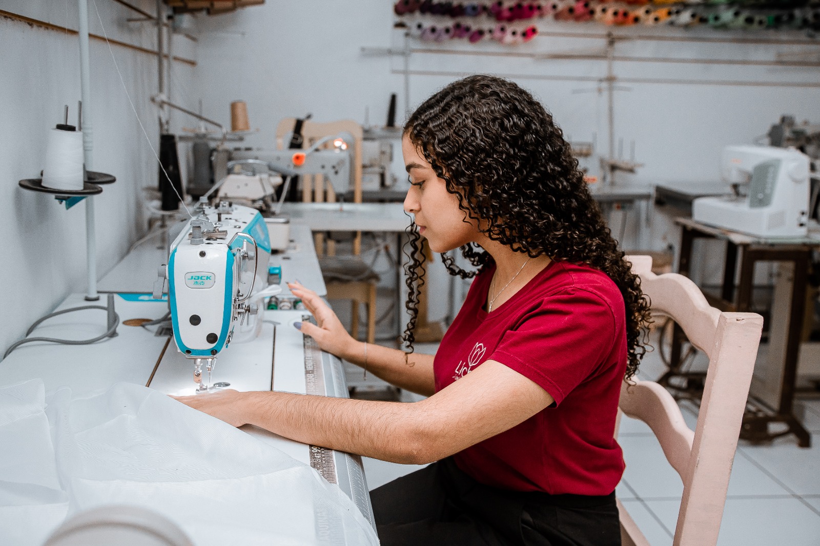 A partir do aprendizado e experiência de Angela, a filha Daiane foi incentivada a aprender na área da costura sempre atuando no auxílio da costura.